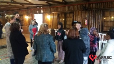 Com o intuito de desenvolver a sociabilidade, estimular vivências coletivas, o estar em grupo, e principalmente privilegiar a convivência intergeracional. Esses foram alguns dos objetivos pensados pelas equipes do Serviço de Convivência e Fortalecimento de Vínculos do Vida Nova e Centro de Convivência da Terceira Idade (CCTI) ao realizar uma atividade com crianças, adolescentes e idosos atendidos pela Associação Feminina de Assistência Social de Criciúma (Afasc), na manhã de segunda-feira (15), no CCTI.
