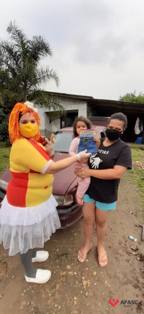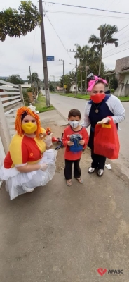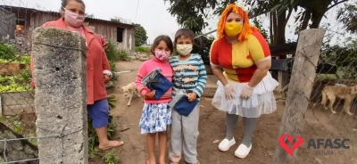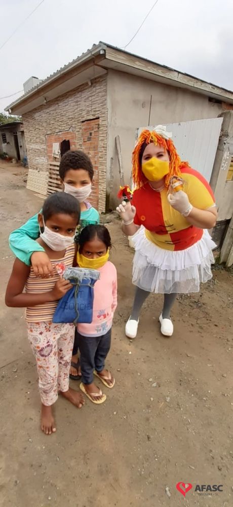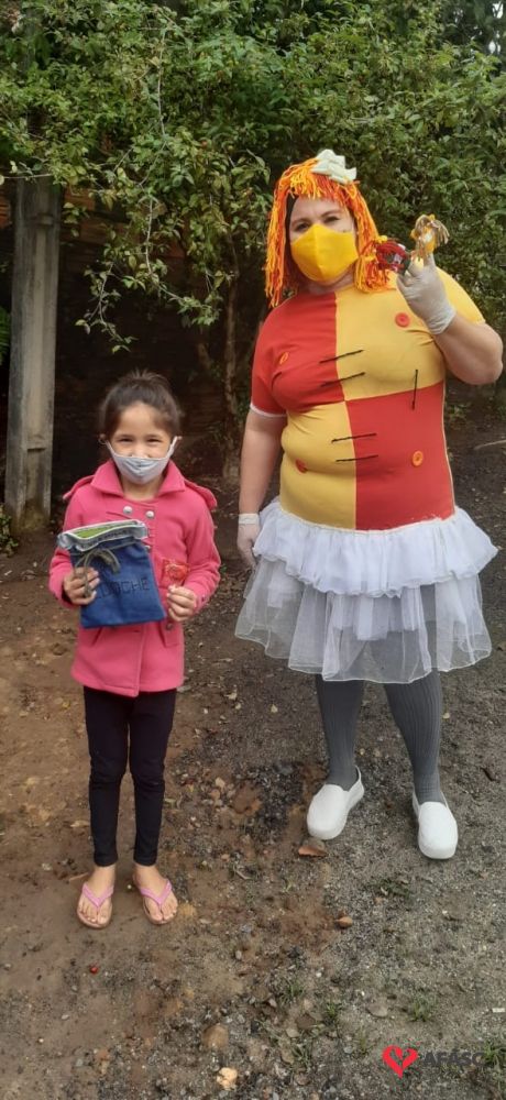 Desde o final do mês de agosto, a equipe do Serviço de Convivência e Fortalecimento de Vínculos (SCFV) da Associação Feminina de Assistência Social de Criciúma (Afasc) que atua no espaço Vila Miguel, tem disponibilizado para as famílias atividades de contação de histórias. Fábulas, contos e lendas, tem chegado até as casas através de gravações, que são repassadas através de redes sociais. Para possibilitar que as crianças e adolescentes se reinventem nas dificuldades, os profissionais acompanhados da boneca Emília realizaram a entrega de 24 kits contendo três dedoches, uma bolsa personalizada e um livrinho de histórias, para auxiliar as famílias das crianças de zero a seis anos.