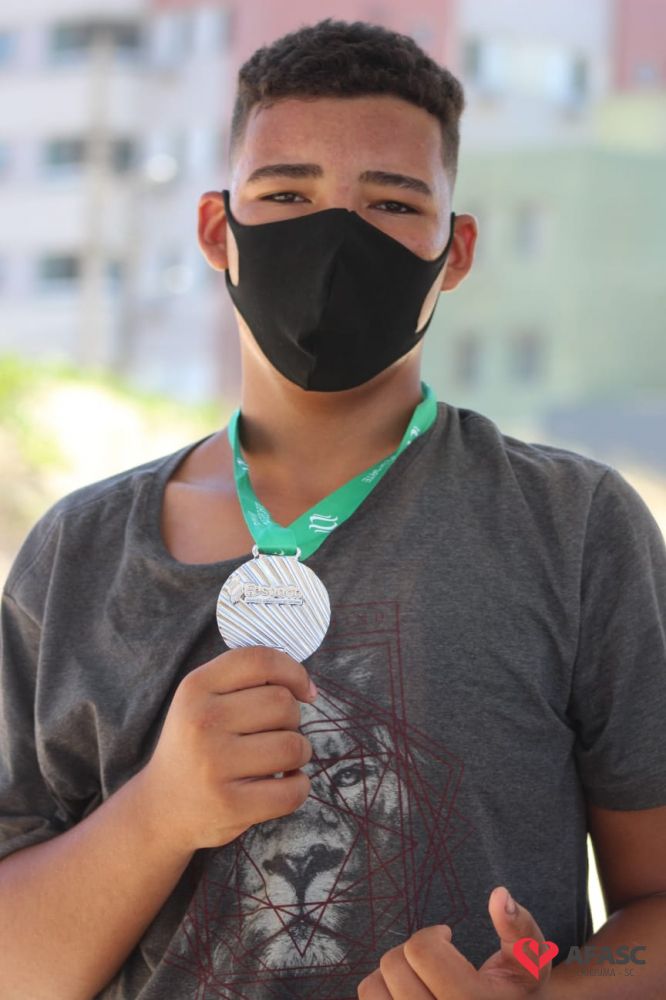 Os atletas foram acompanhados das orientadoras sociais Bruna Cardoso Varmeling, Eduarda Cardoso Varmeling e do facilitador Paulo Ricardo de Souza.