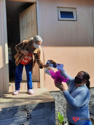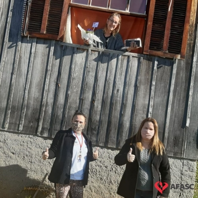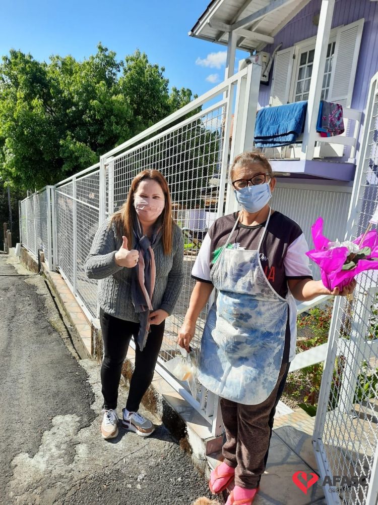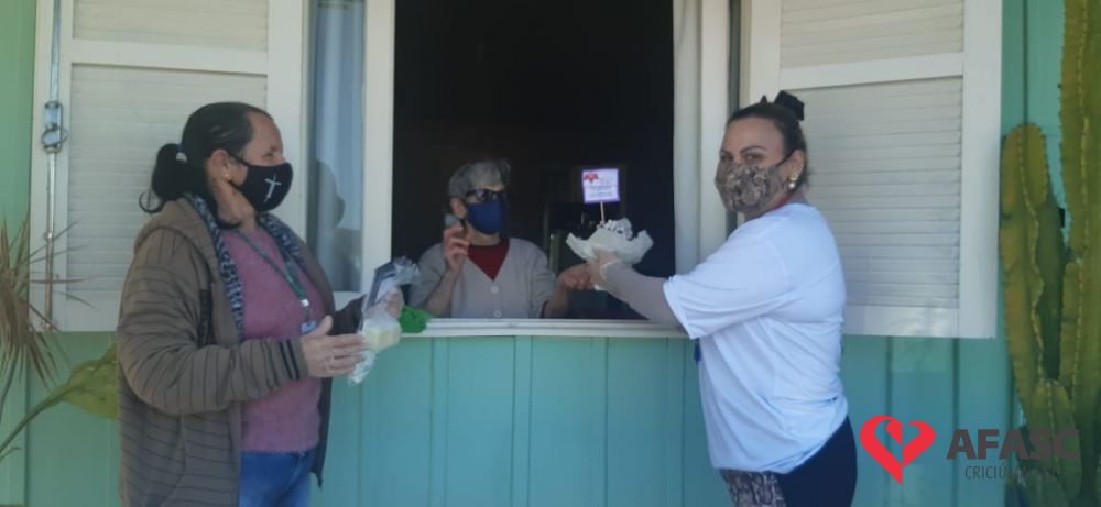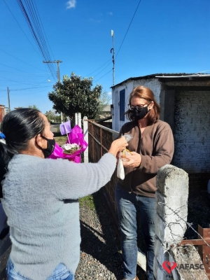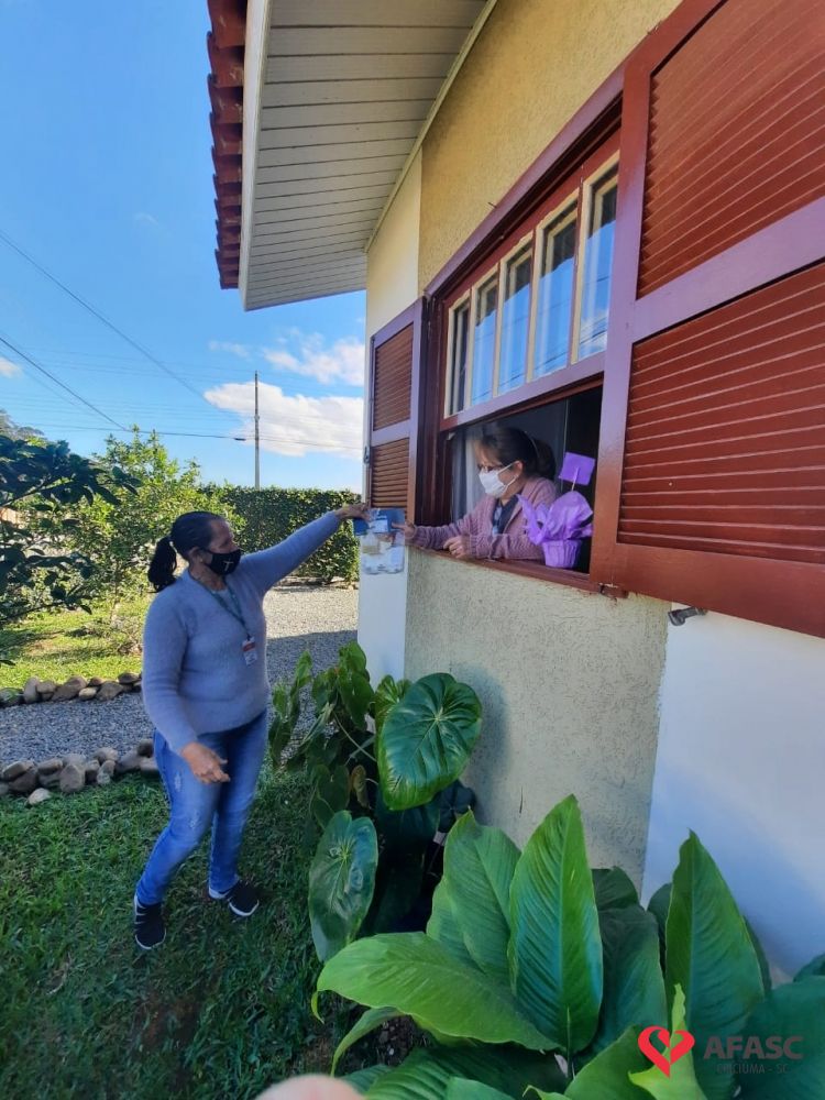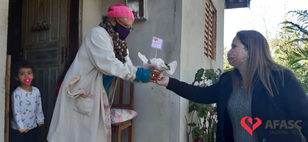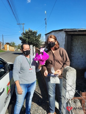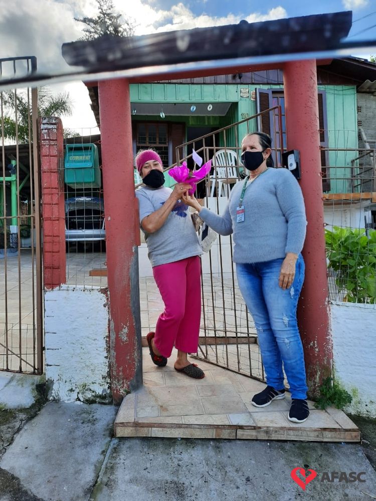 Mais uma ação do Projeto “Me conta da tua janela” foi realizada pelas equipes do Serviço de Convivência (SCFV) de zero a 17 anos da Associação Feminina de Assistência Social de Criciúma (Afasc) e Serviço de Proteção e Atendimento Integral a Família (PAIF) do centro de Referência de Assistência Social (CRAS) Vila Miguel, nesta quinta-feira (30). A orientadora social do Serviço de Convivência, Liliane Macan acompanhada das técnicas do PAIF, Jadna Mendes, Graziela Lourenço, e da facilitadora Marli Marcelino, realizaram a entrega de flores para as mães participantes da oficina “Arte de criar”.