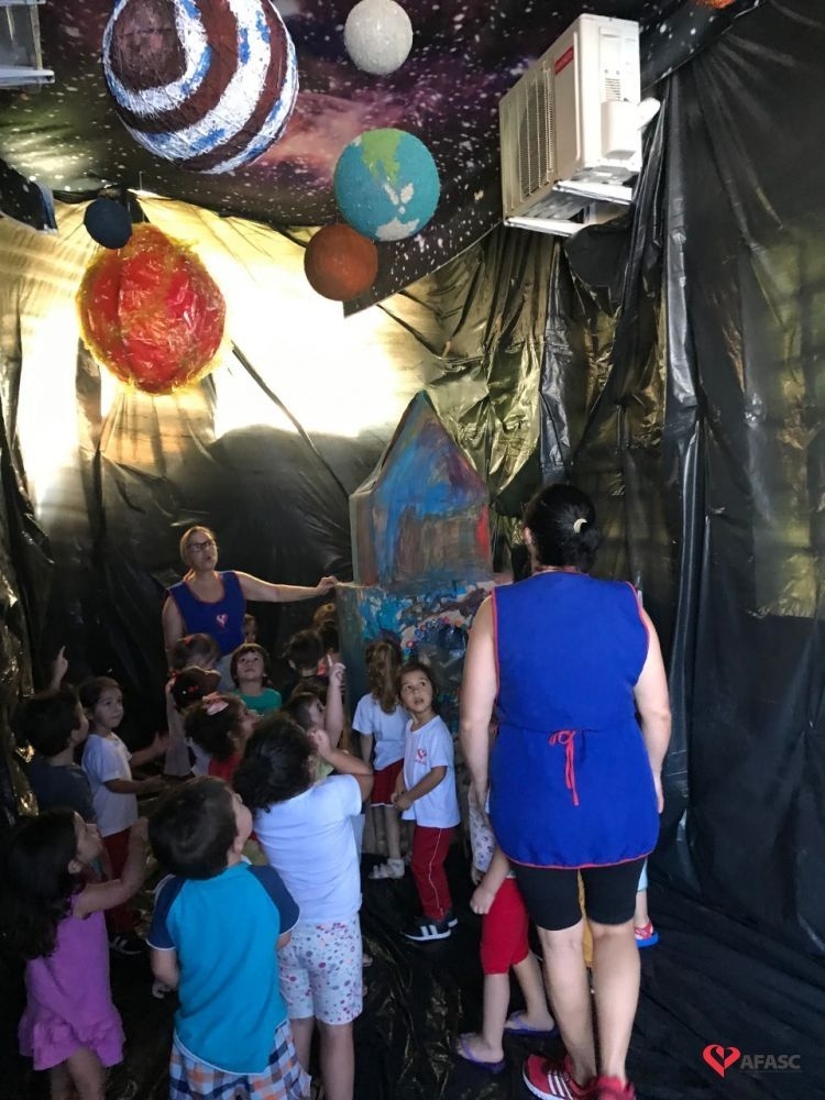 Desde muito pequenas, as crianças mostram grande interesse por elementos naturais, sentem curiosidades e necessidades de explorar o mundo desconhecido. Pensando em aflorar o conhecimento dos pequenos, o Centro de Educação Infantil (CEI) da Associação Feminina de Assistência Social de Criciúma (Afasc), vem desenvolvendo o projeto macro o Sistema Solar, com o título “Vivenciando as Maravilhas do Universo”, buscando explorar os mistérios, encantos e fantasias através de histórias e personagens como o Pequeno Príncipe.