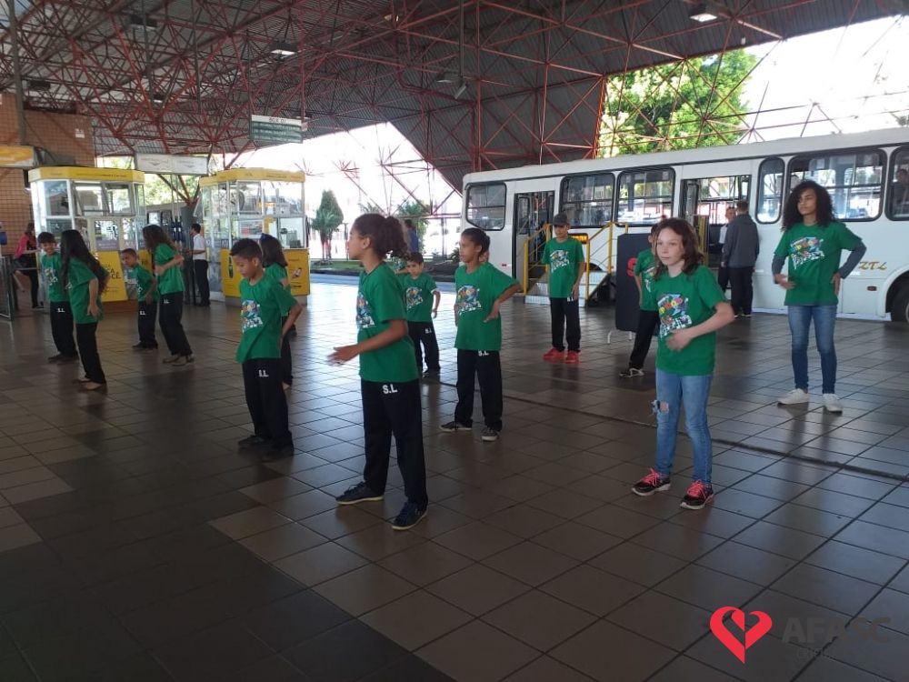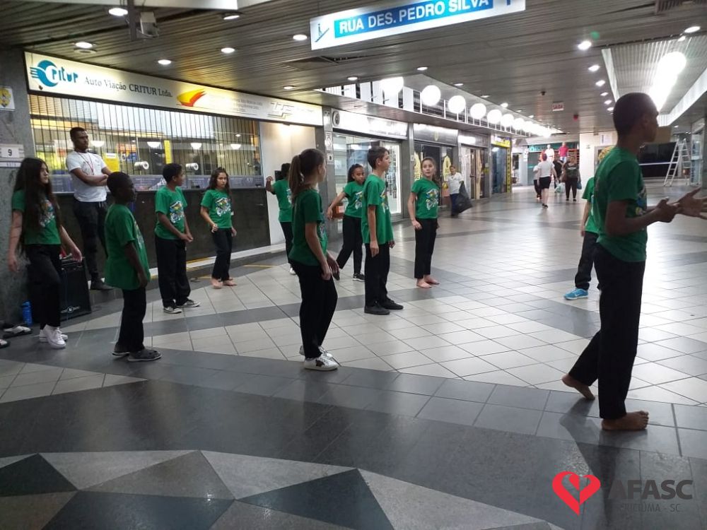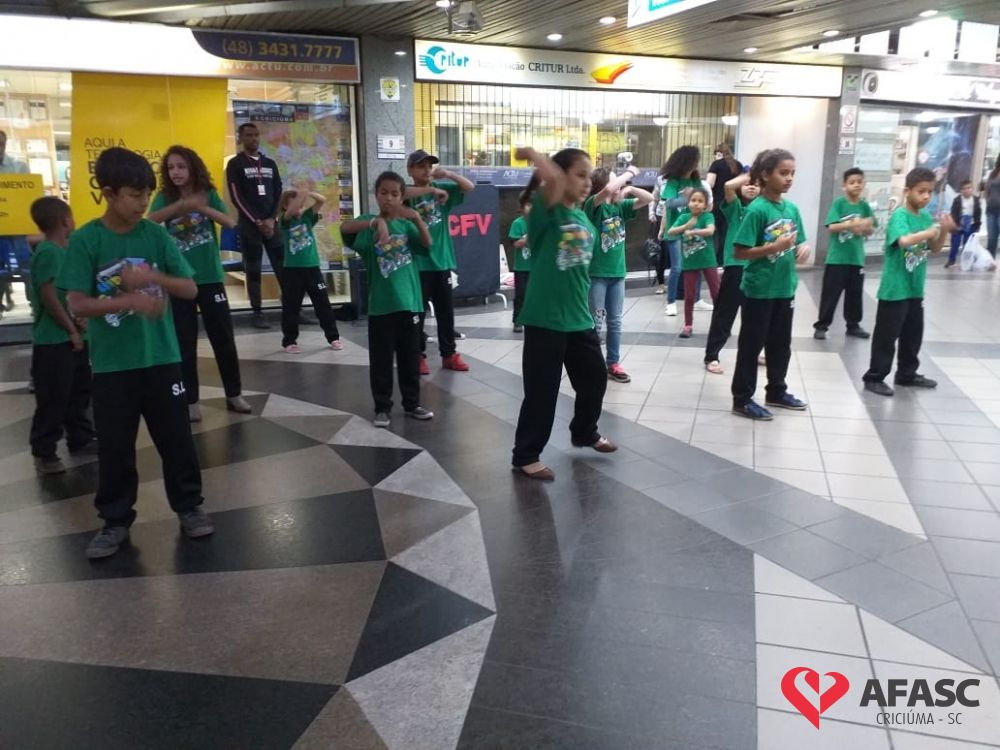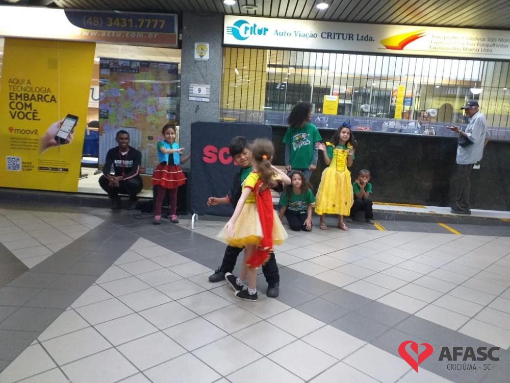 Crianças e adolescentes que participam da oficina de dança do Serviço de Convivência e Fortalecimento de Vínculos (SCFV) da Associação Feminina de Assistência Social de Criciúma (Afasc) no Centro de Referência de Assistência Social (CRAS) Santa Luzia, deram um show no terminal central nesta quarta-feira (28). Com a ajuda do facilitador de dança Maicon Motta, os participantes do serviço, utilizando um mix de música, encantaram quem circulava pelo local com belíssimas apresentações artísticas.