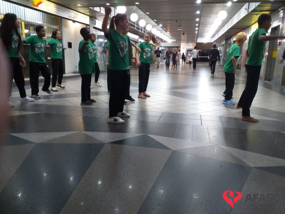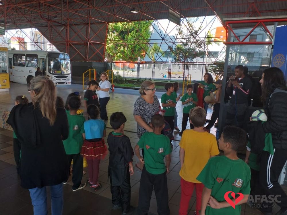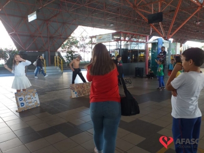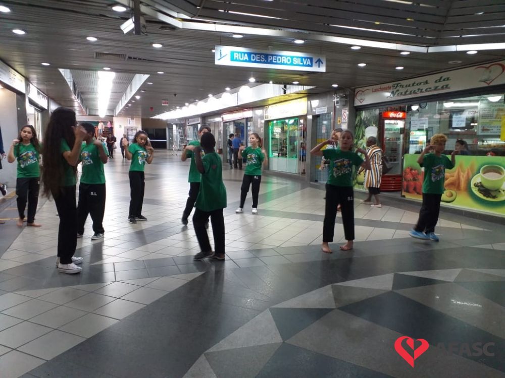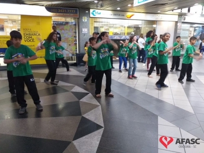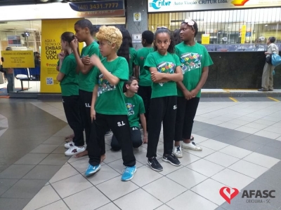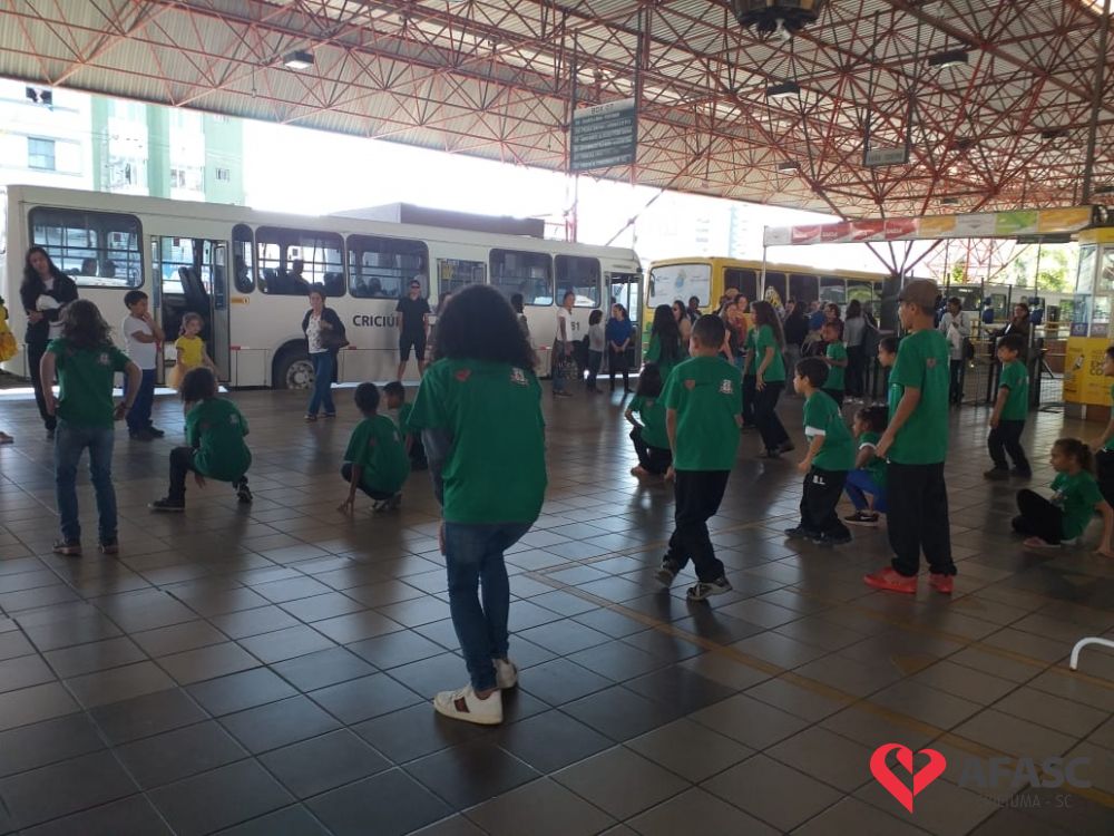 Crianças e adolescentes que participam da oficina de dança do Serviço de Convivência e Fortalecimento de Vínculos (SCFV) da Associação Feminina de Assistência Social de Criciúma (Afasc) no Centro de Referência de Assistência Social (CRAS) Santa Luzia, deram um show no terminal central nesta quarta-feira (28). Com a ajuda do facilitador de dança Maicon Motta, os participantes do serviço, utilizando um mix de música, encantaram quem circulava pelo local com belíssimas apresentações artísticas.