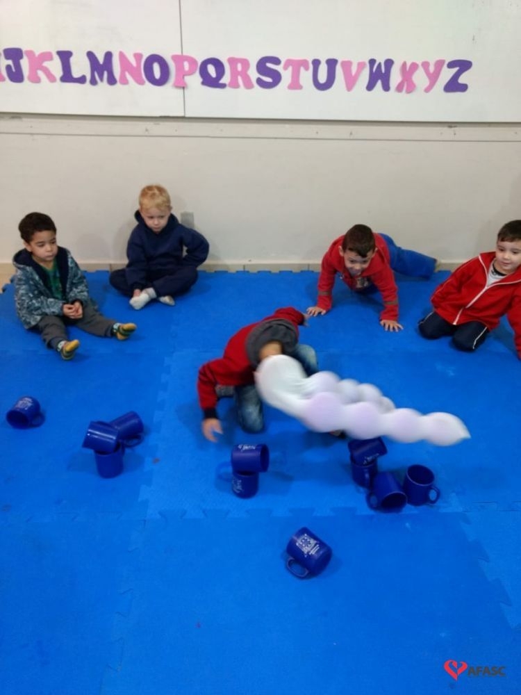Entre os 3 e cinco anos, as crianças estão aptas a desenvolverem as habilidades das funções executivas e de auto-regulação. Para isso é necessário adaptar atividades às habilidades das crianças e reduzir gradativamente a ajuda prestada para que ela vá ganhando autonomia, conseguindo resolver sozinhas suas dificuldades. Com o intuito de aprofundar as aprendizagens sobre os sentidos, a professoras do Grupo Misto 4 e 5 do Centro de Educação Infantil (CEI) da Associação Feminina de Assistência Social de Criciúma (AFASC) Umberto Cesa, Francielen Machado, desenvolveu a atividade “torre de canecas”.