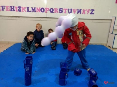 A atividade colabora com o controle gradual do próprio movimento, ao mesmo tempo em que aperfeiçoa recursos de deslocamento e habilidades motoras.