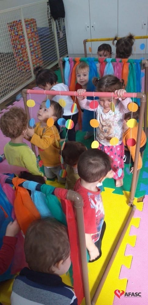 As crianças do Grupo Misto 1 e 2 do Centro de Educação Infantil (CEI) da Associação Feminina de Assistência Social de Criciúma (Afasc Benevenuto Guidi vivenciaram uma oportunidade diferente. As professoras do Grupo Adriana Machado e Mariele Medeiros criaram o “túnel das sensações”, onde os alunos estão aprendendo um pouco mais sobre os cinco sentidos e desenvolvendo sua coordenação motora, ao mesmo tempo em que se divertem.