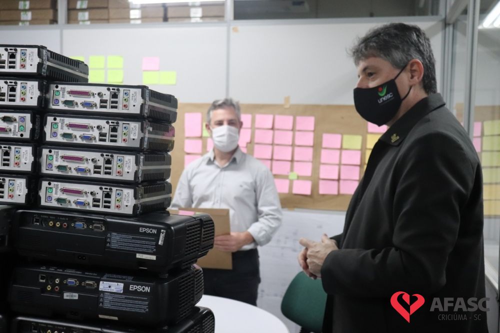 A Unesc entregou na tarde desta quarta-feira (2/9), 44 equipamentos eletrônicos, com o objetivo de beneficiar pessoas da comunidade. O ato ocorreu no Departamento de Tecnologia da Informação (DTI) e reuniu representantes da Associação Feminina de Assistência Social de Criciúma (Afasc) e do Projeto Educa Samu que assinaram o termo de doação e receberam equipamentos como projetores, computadores, mousses e teclados.
